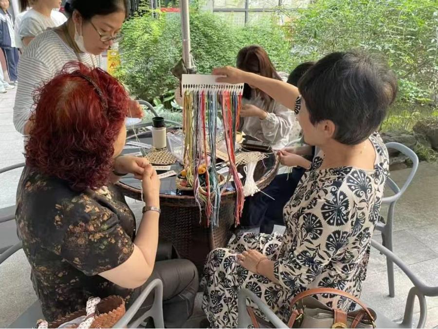 恰逢端午前夕,一場以絲線爲筆、詩書爲媒的代際對話在新空間悄然展開,現場設置了創意互動簽到、主題三行詩展、書袋互動裝置和代際生活實驗四大版塊活動。繫着端午五彩絲的鈴鐺輕響,一個繡有艾草紋樣的“書”袋落入讀者掌心,袋中的《傅雷家書》與“有些話要慢慢說才入心”的薦書留言相映成趣。據統計,活動當天共發放了30個暗藏玄機的盲盒“書”袋,每個“書”袋中均含有長者推薦優秀書籍與老年讀者薦書語錄。