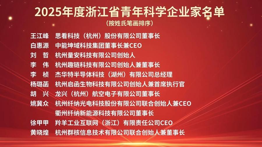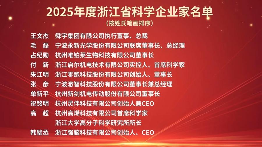 另外,10名2025浙江省科學企業家、10名2025浙江省青年科學企業家名單在現場公佈。據介紹,浙江省於2024年首次推出科技型企業家推薦計劃,是國內首次在省級層面爲科技型企業家制定選育方案,目的是要選育一批懂科學、有能力、具備國際化視野的創新創業者。2025科技型企業家選育工作由省科協聯合省經信廳、省教育廳、省委金融辦等單位共同開展,自三月份啓動以來,受到社會廣泛關注,共有416名企業家參與報名遴選。