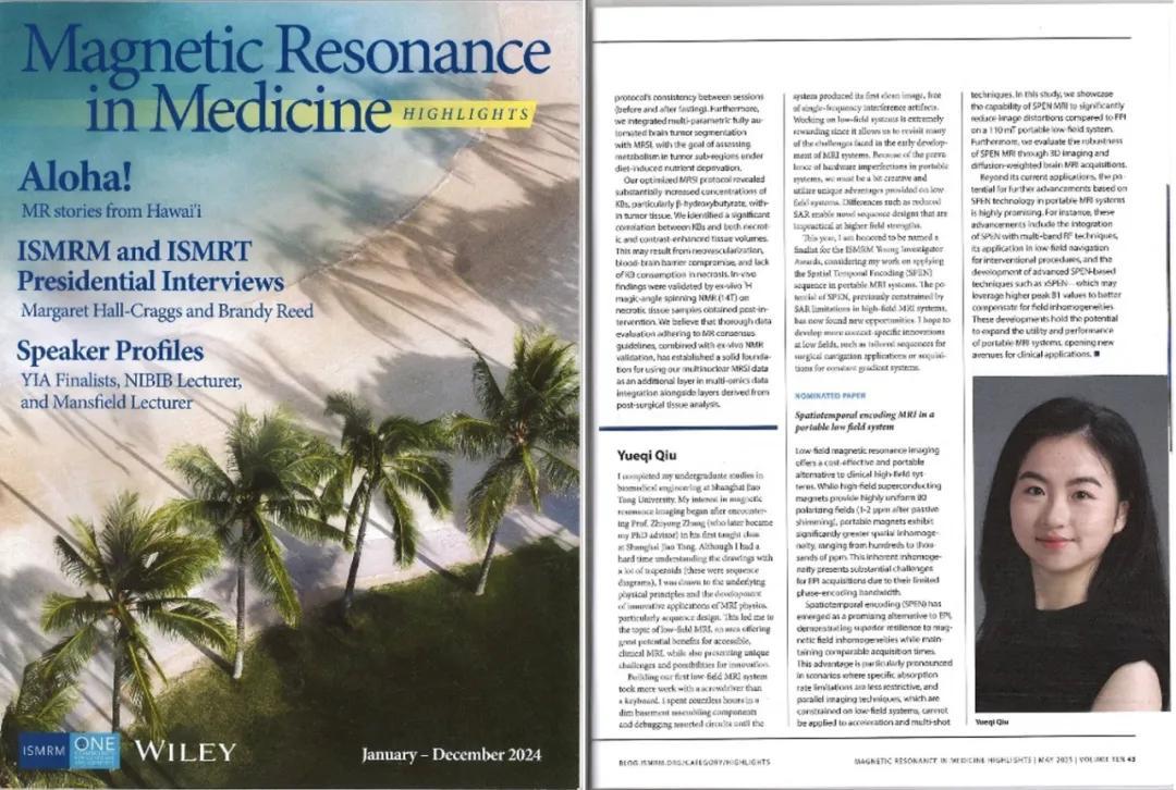 磁共振領域權威期刊Magnetic Resonance in Medicine Highlights刊登邱月淇的採訪介紹