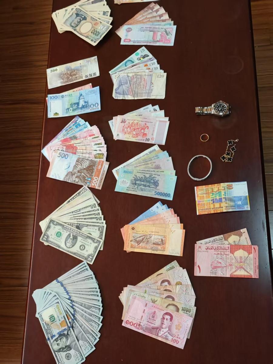 通過進一步調查,警方鎖定了犯罪嫌疑人宋某,於5月8日凌晨,對其實施抓捕,在其家中查獲手錶2塊、戒指5枚、項鍊6根、手鍊1根,及大量外幣等贓物,部分物品與涉案物品吻合。