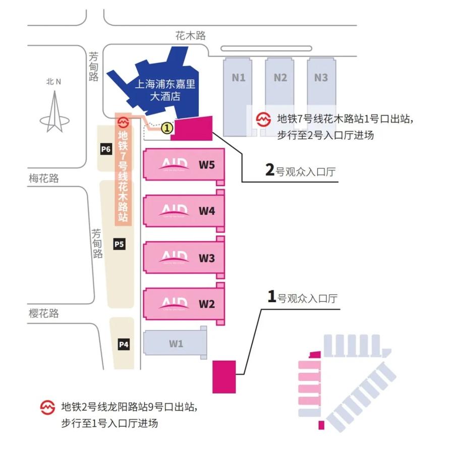 乘坐地鐵來的朋友:地鐵7號線花木路站1號口出站,步行至2號入口廳進場。地鐵2號線龍陽路站9號口出站,步行至1號入口廳進場。