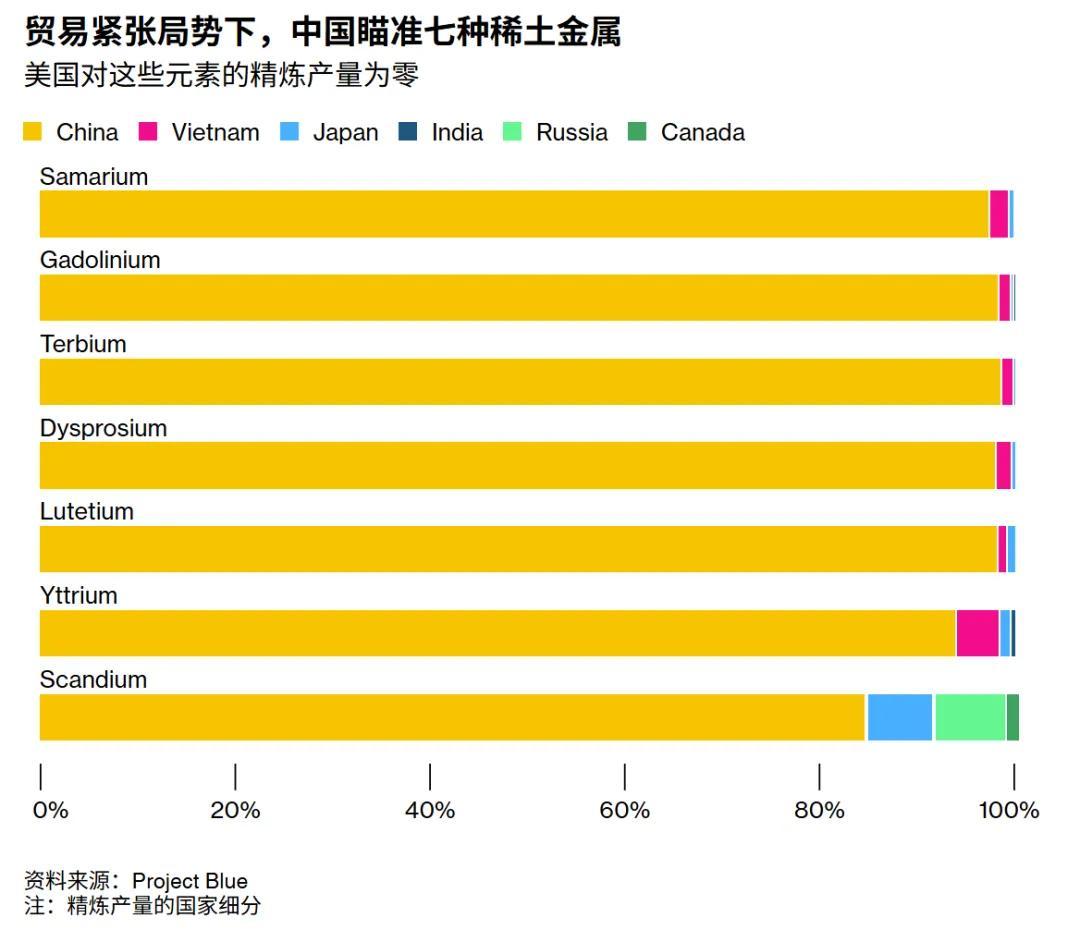 今年4月2日,特朗普宣佈對等關稅制裁後,中國出手反制。其中,商務部會同海關總署發佈關於對釤、釓、鋱、鏑、鑥、鈧、釔等7類中重稀土相關物項實施出口管制措施的公告。這也是管控名單制度發佈以後,首次明確被納入出口管制的兩用物質。