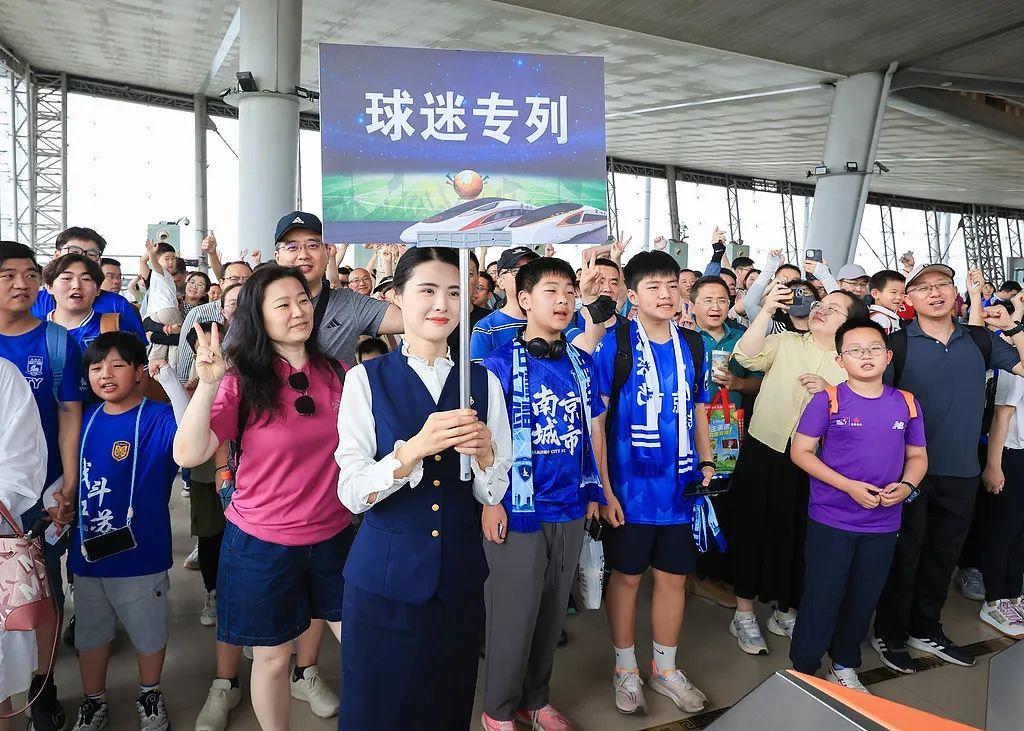 賽前,南京開通南京站往返淮安東站的江蘇省首趟“蘇超”球迷高鐵專列,可當天來回,車站與奧體還有設有免費往返大巴,提供了極大的便利。