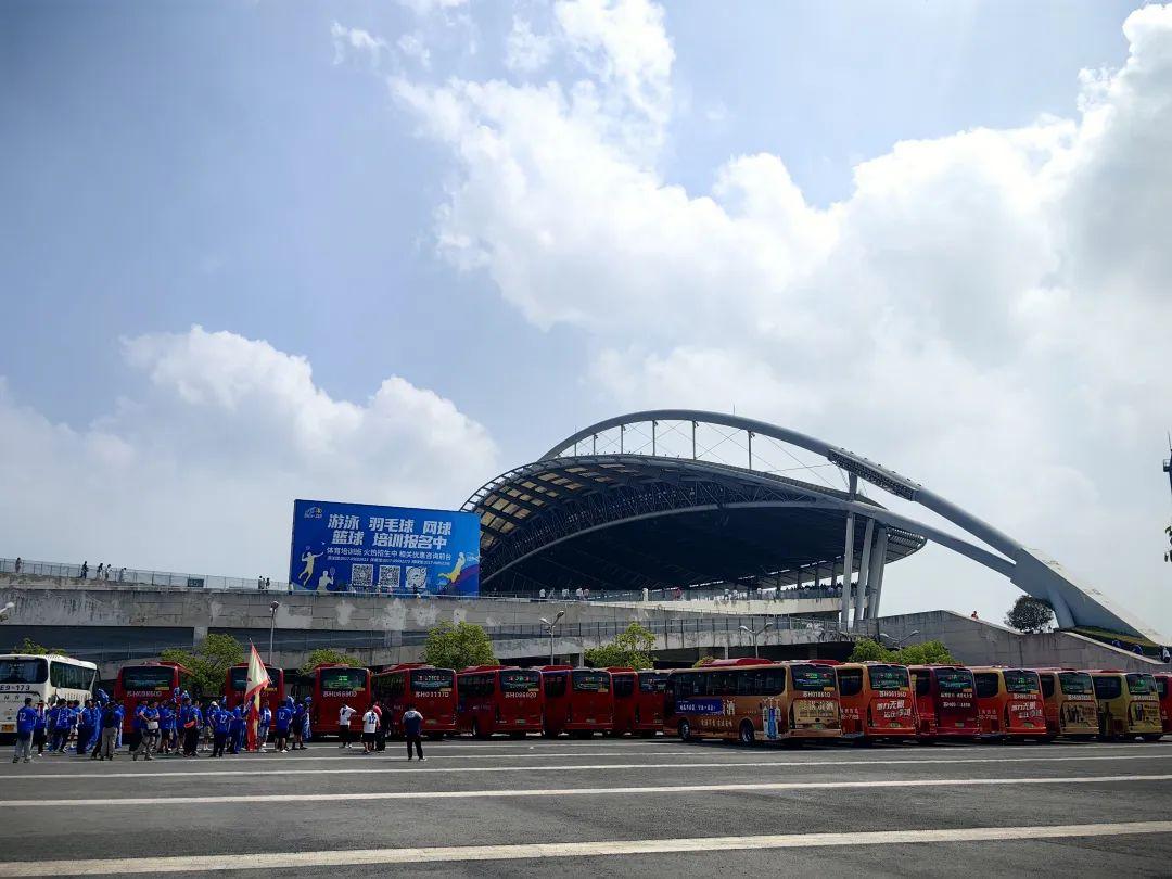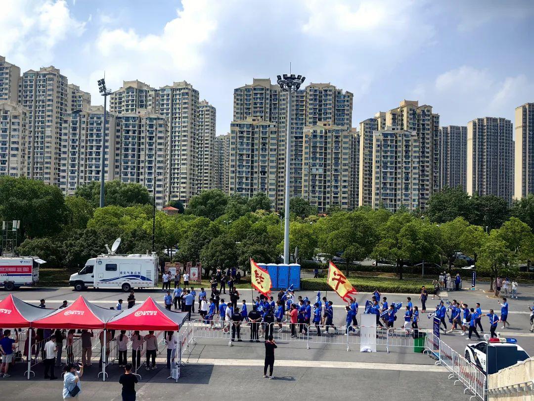 開賽日早九點,奧體中心進出口嚴重堵塞,安保嚴密。
