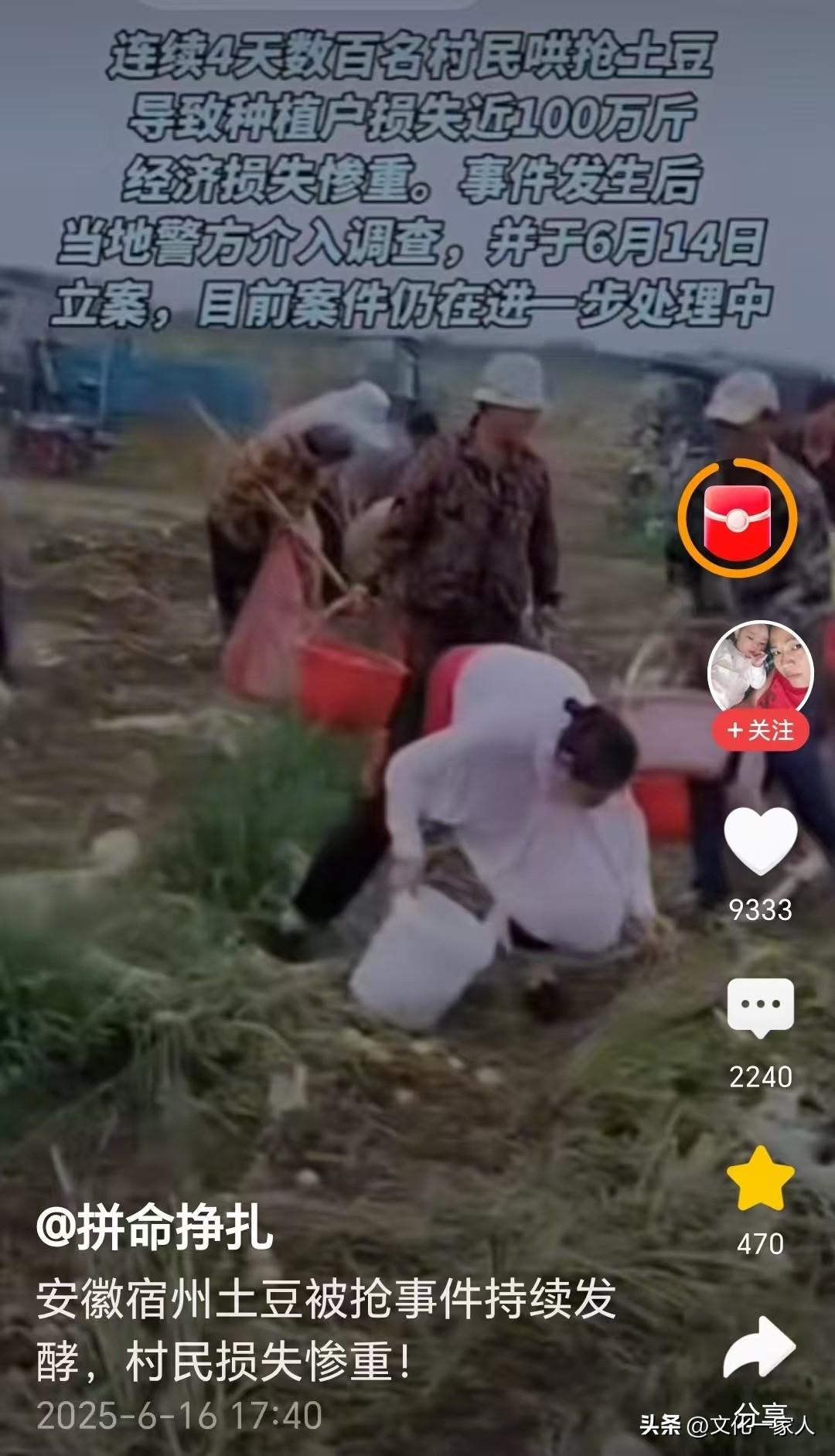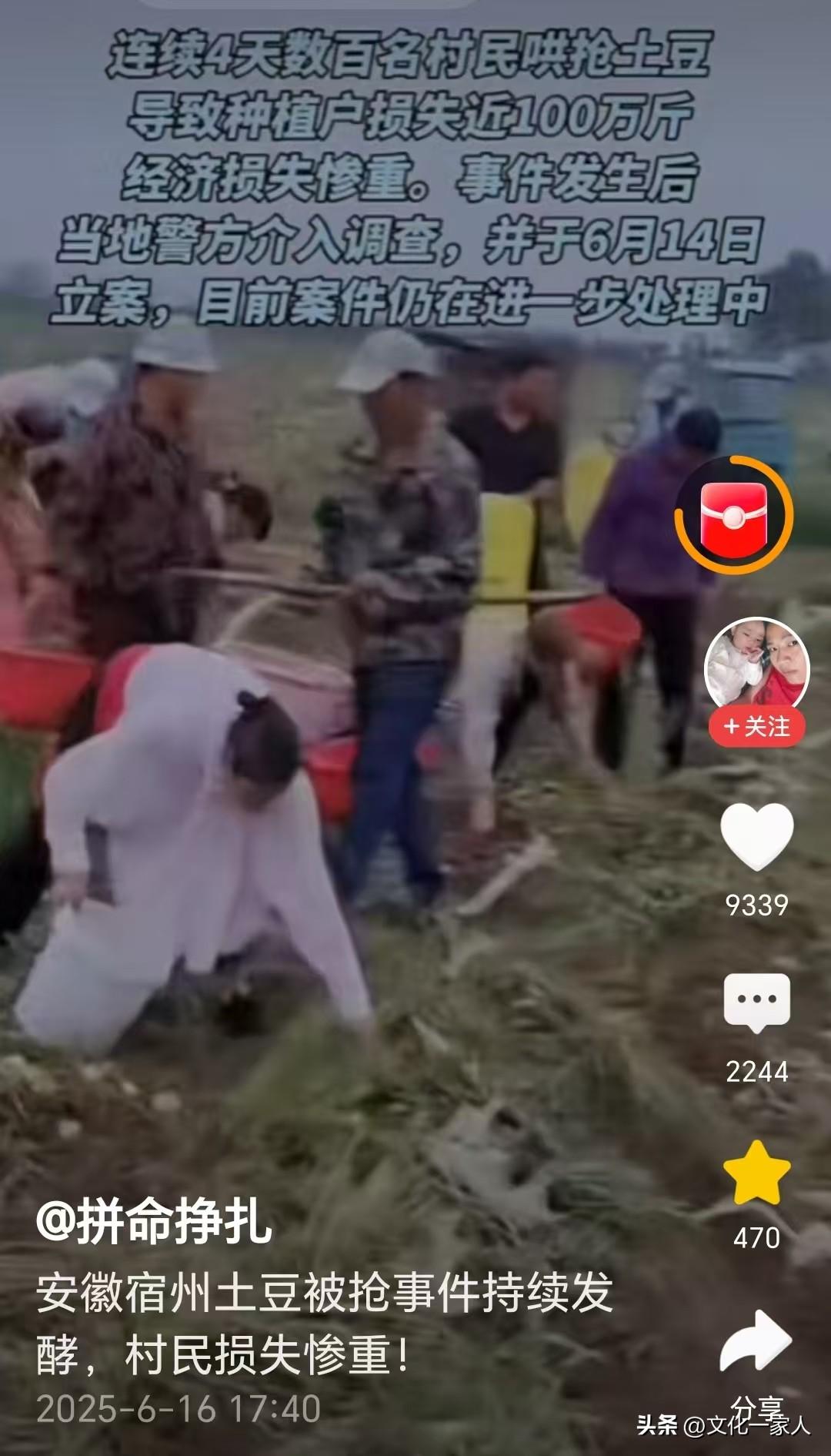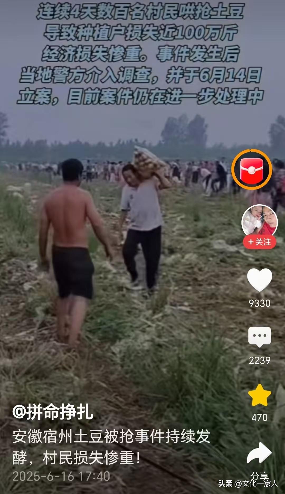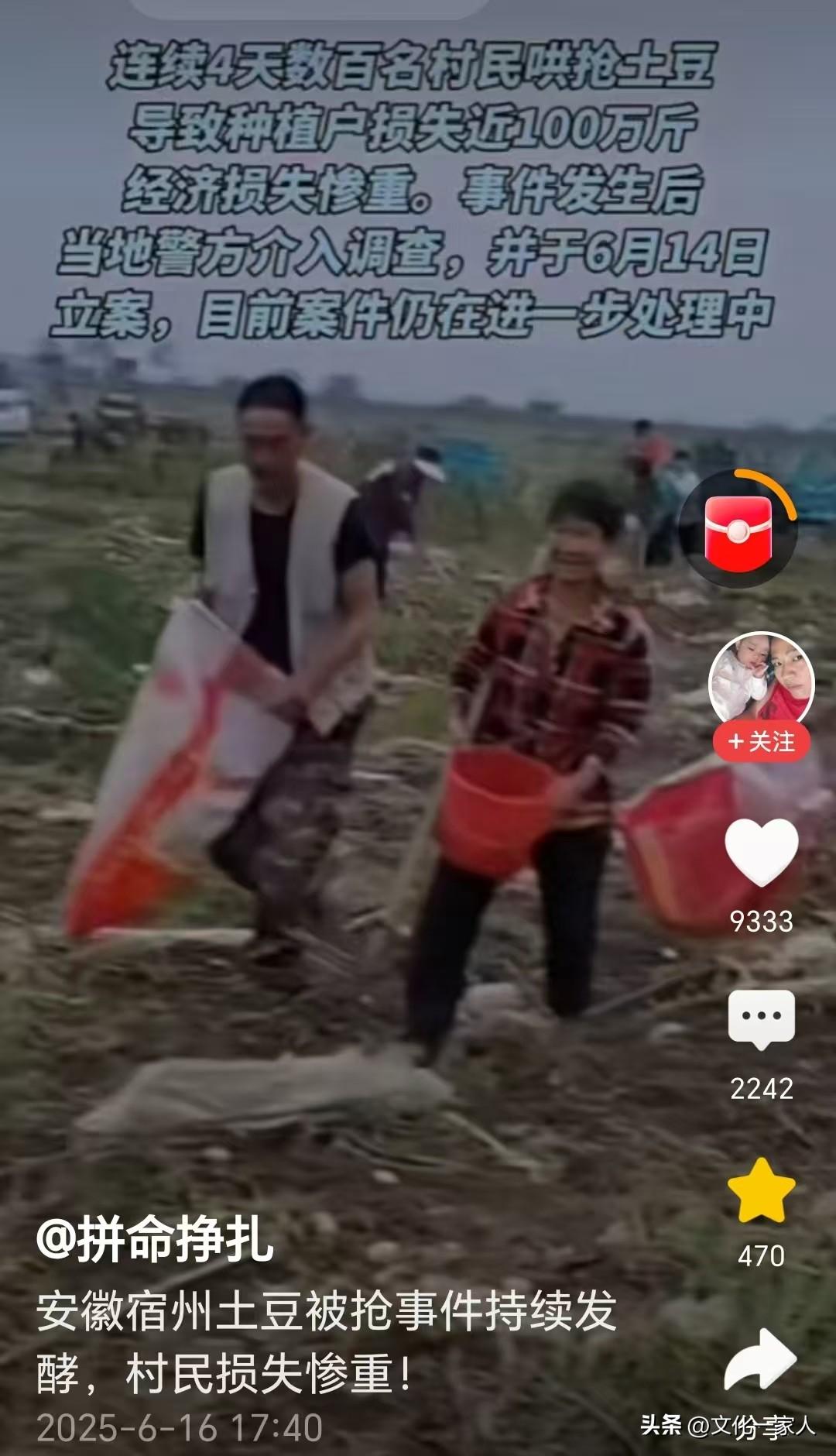 光天化日,幾百人,上千人,晝夜不停集體哄搶他人500畝土豆,整整搶了四天,預計上百萬斤。