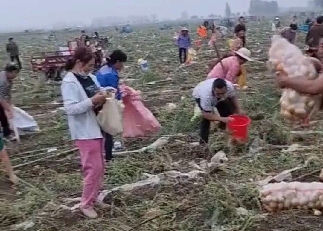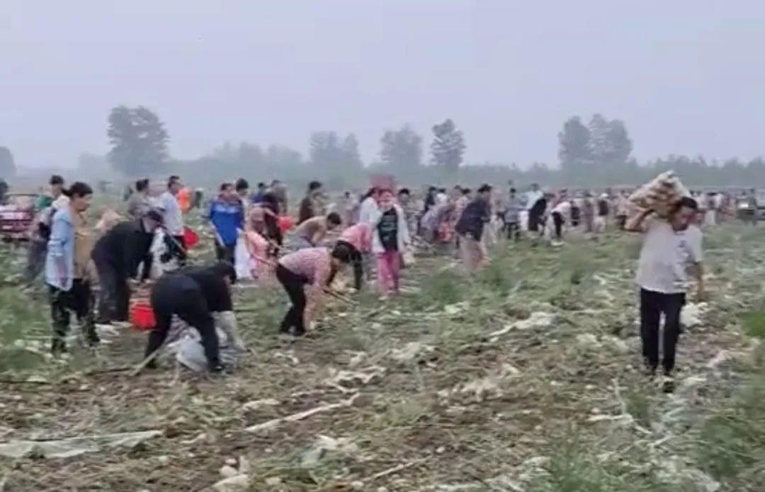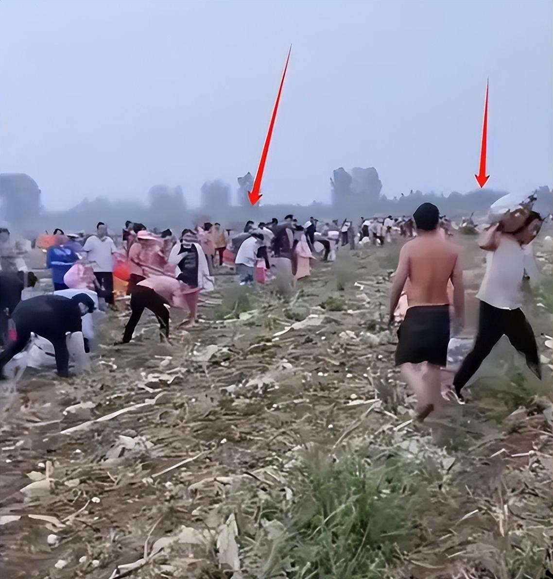 從曝光的有關視頻之中也能夠看出,前往曾先生田地的村民可謂是密密麻麻,他們手中的工具也是五花八門,有的拿着桶,有的拿着編織袋。