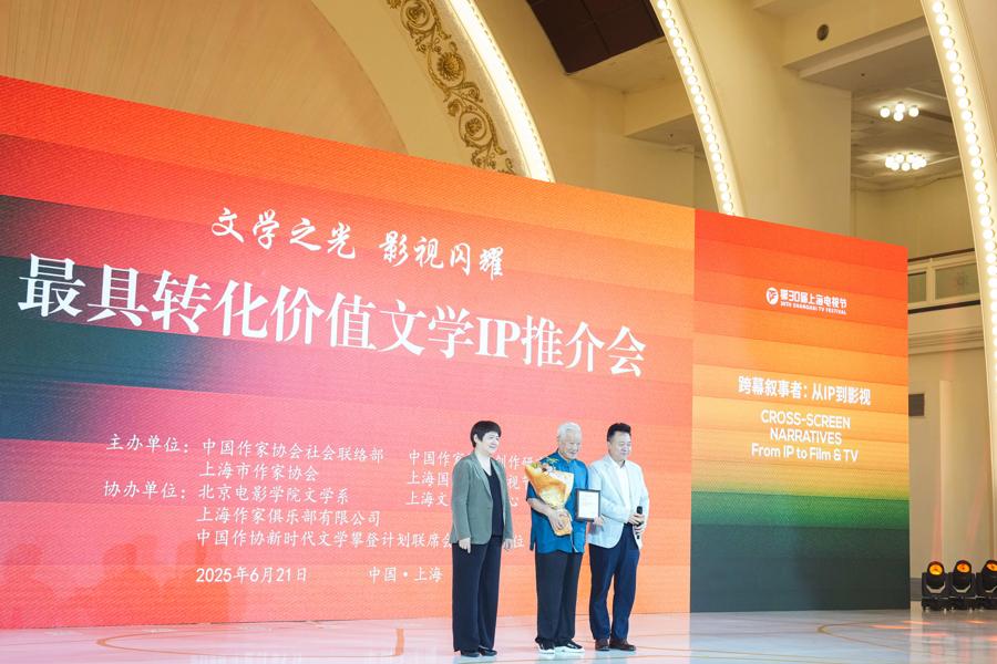第27屆上海國際電影節與第30屆上海電視節舉辦的國際影視市場於6月21日在上海展覽中心正式開幕。下午,“文學之光影視閃耀——最具轉化價值文學IP推介會”在主論壇會場舉行,中國作協黨組成員何向陽,著名作家孫甘露、馬伯庸,著名導演謝飛出席大會並作主旨演講,一同探討文學IP與影視創作的雙向賦能之路。