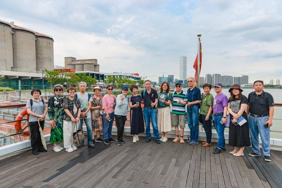 龍華碼頭的蝶變,承載着上海工業文明的厚重記憶。在“匯講壇”的CityWalk中,市民們登上游船,好奇地感受這一濱水新地標的煥新。主持人秦暢介紹道:“現在西岸以水泥爲底色,原因是我們所處的是亞洲最大的水泥廠,生產的象牌水泥曾用於國際大廈、海關大樓等上海地標,是民族工業的驕傲。”