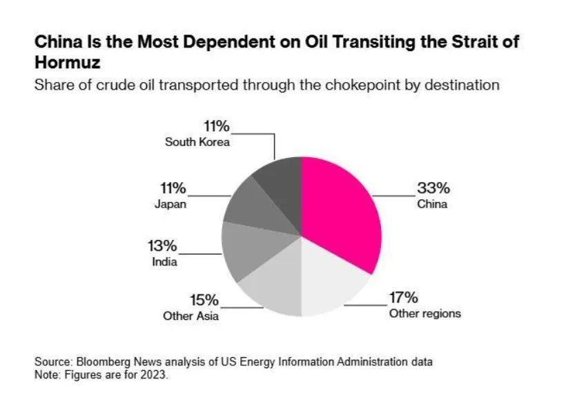 如果從原油進口絕對值來看,中國依賴度最高,平均每天有540百萬桶原油要從霍爾木茲海峽運走。