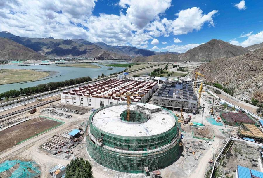 拉薩河谷平原上,“虎峯”達孜巍然屹立。在達孜區邦堆鄉朗熱村的拉薩河邊,一棟造型獨特的白色建築裏,全國最大的產業援藏項目——由鎮江市援藏工作組引進的拉薩朗熱酒村項目正在“釀造”。該項目總投資超10億元,預計8月建成投產,投產後年產成品酒5000噸以上,產值超10億元。項目還有望帶動青稞酒產業集羣發展,打造集“生產研發、生態觀光、文化體驗”於一體的鄉村經濟新業態。