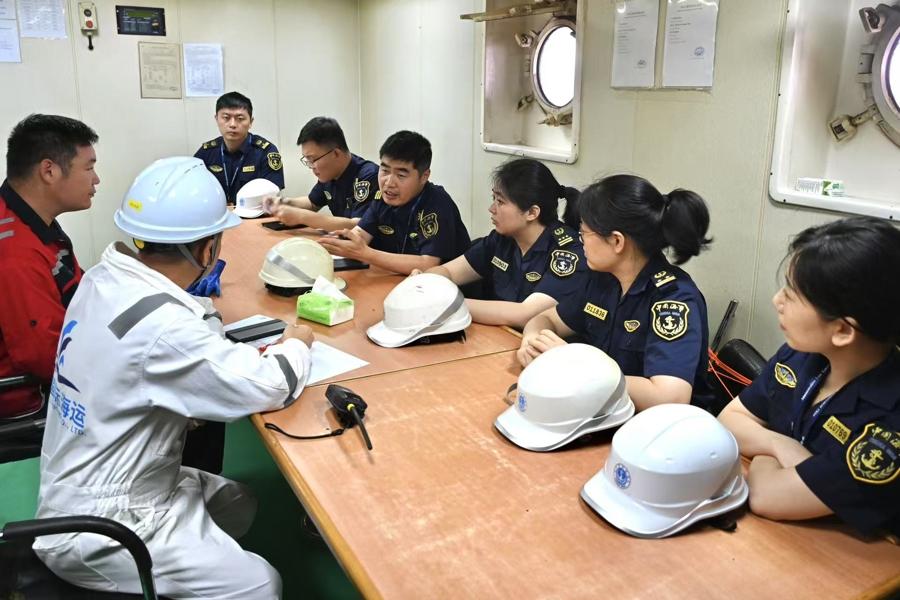 此外,爲防範夏日船舶動火作業安全風險,政務中心嚴格落實港內明火作業備案制度,對“NAVI JENNY”輪動火作業申報材料實施“清單式”覈查。同時聯合綜合業務處、張華浜海巡執法大隊現場重點檢查該輪新能源汽車積載隔離、防火分隔、消防佈置等安全防護措施,現場對汽車系固綁紮情況進行指導,並對車輛吊裝作業實施全程監管及應急保障。