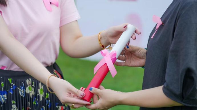 今年首次舉辦的“粉紅絲帶”乳腺健康校園行活動,先後在武漢、北京、上海三地的知名高校舉辦,觸達了數以千計的師生,讓她們從“被動科普”到“主動參與”,通過深入淺出的專家講座和別開生面的趣味跑,讓師生們接觸到有關乳腺健康的知識,一方面將所學所得傳遞給身邊的女性親友,提醒她們關注自身乳腺健康,另一方面也不斷增加相關知識儲備,爲未來的自身健康保駕護航,身體力行“同聲相應,共生於愛”。