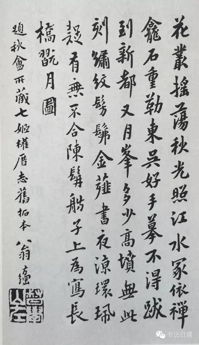 這篇小楷的內容,是懷念“七姬”,七個女人。這七個女人都是一位姓潘的將軍的小妾,估計這老潘是很勇猛的。可是再勇猛的男人也有落難的時候,這位潘將軍因爲要赴國難,臨行前便做七位小妾的思想工作:這個,是吧,國家有難,我抱着誓死的決心,不忍連累你們,爾等各自散去,找個好人就嫁了吧。