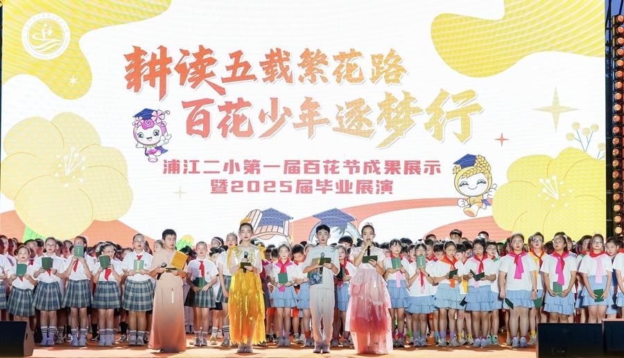 日前,上海市閔行區浦江第二小學浦濤路校區舉辦主題爲“耕讀五載繁花路·百花少年逐夢行”2025屆畢業展演,孩子們的才藝與熱情在舞臺綻放,詮釋五年來在浦江二小這片沃土上的成長與蛻變。