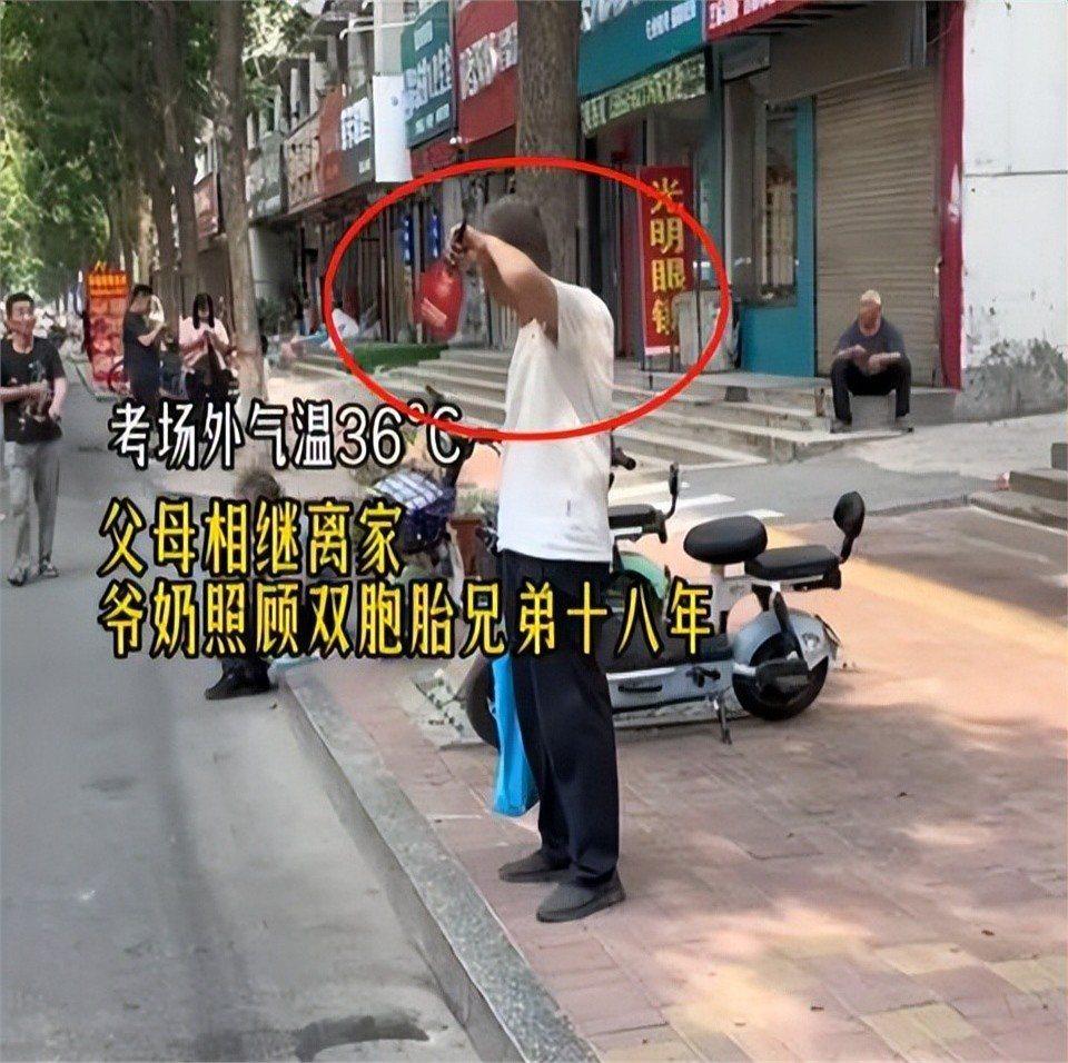 隨後有網友找到老人,讓老人到附近的商戶之中休息,但是老人卻表示自己在等待兩個雙胞胎孫子高考。