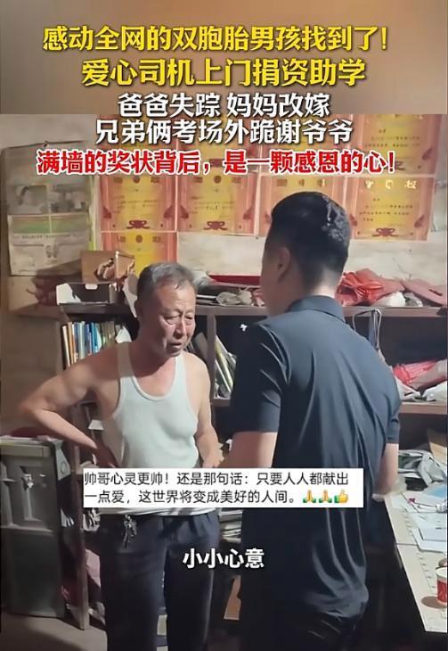 在高考結束之後,兩個孫子看着不顧炎熱苦苦等待自己的爺爺,孫子也是極爲感激,這麼多年來,爺爺爲這個家庭,爲自己付出了太多太多,兩個孫子直接跪謝爺爺,視頻被傳到網上之後哦了引發了很多網友的關注。