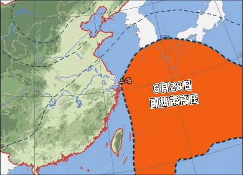 週日開始上海轉受副熱帶高壓控制,本市將於29日出梅。未來10天本市以晴熱天氣爲主,其中7月上旬極端最高氣溫可達39℃至40℃。