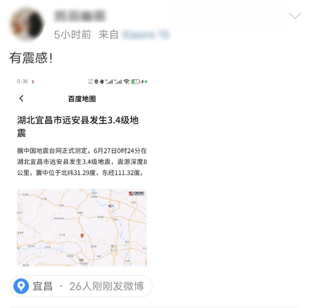 湖北遠安縣發生3.4級地震,襄陽、荊州等多地網友表示有震感