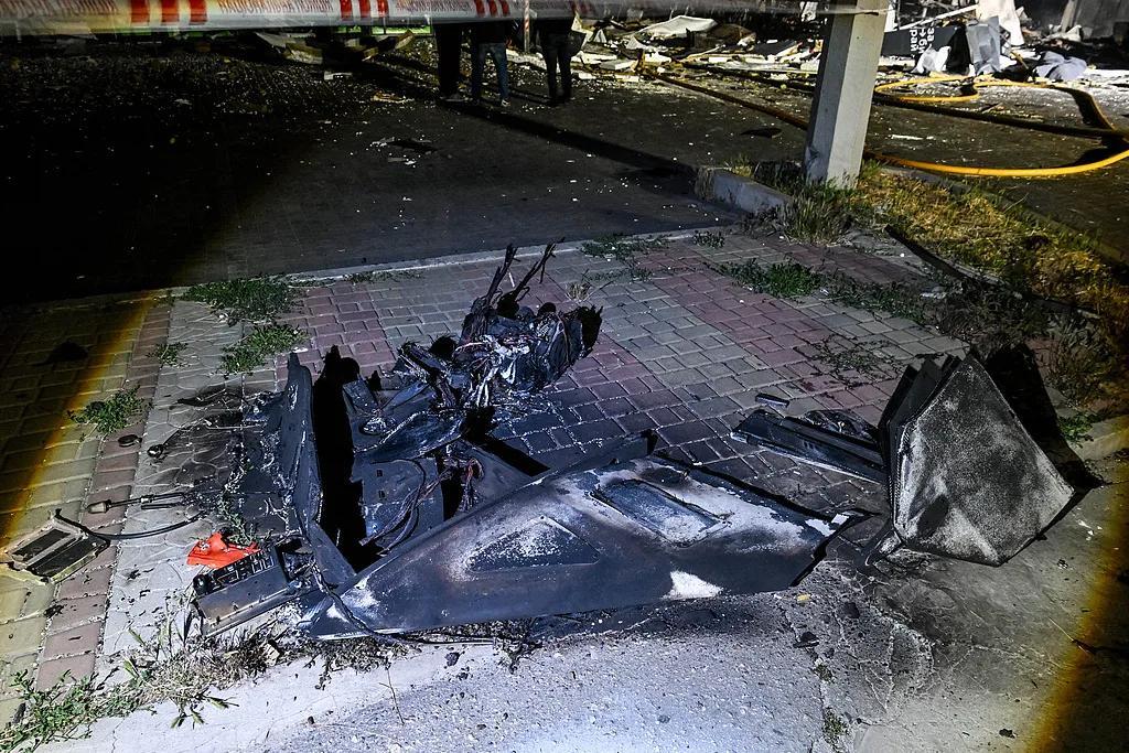 烏克蘭,俄羅斯無人機殘骸落在地上.
