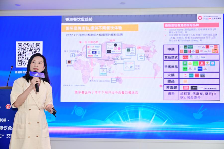 投資推廣署旅遊及款待總裁黃思敏,就香港的營商優勢、政策新機遇、香港餐飲業市場環境和實戰案例等,向當地餐飲及食品企業及傳媒作詳細講解,並介紹特區政府投資推廣署的企業服務,鼓勵企業充分利用香港平臺拓展業務版圖。