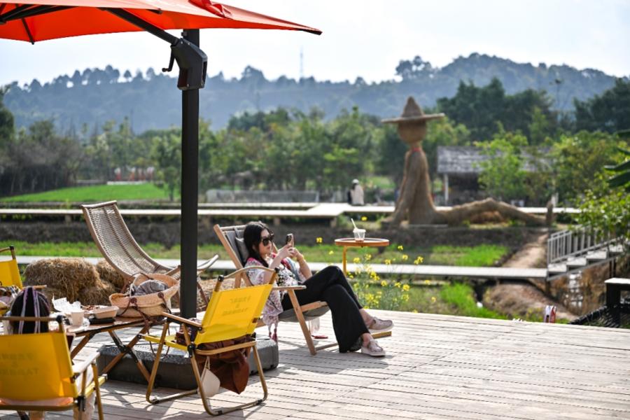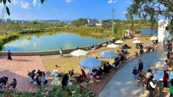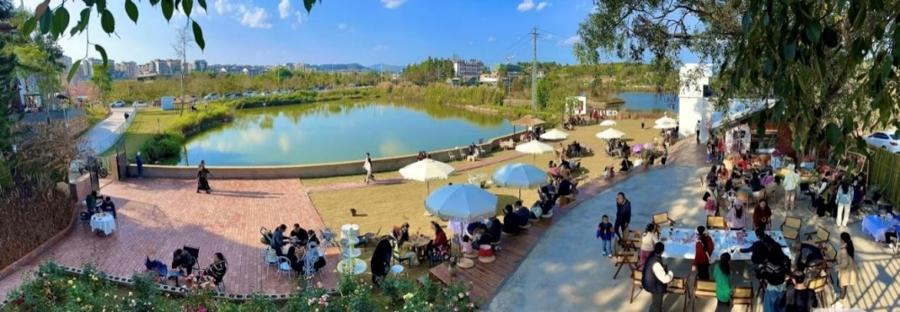 在思茅區南部溼地公園,草坪茶咖、湖畔茶咖、露營茶咖等新業態精彩紛呈。藍天白雲下,青翠草坪與澄澈湖水相映成趣,帳篷、遮陽傘、躺椅等休閒設施錯落有致。遊客們點上一杯咖啡或普洱茶,躺在柔軟的草地上,望着波光粼粼的湖面,悠然愜意地度過一個慵懶的下午。來自昆明的遊客王麗麗感慨:“躺在草坪上曬太陽,呼吸着湖畔溼潤的空氣,再喝上一口醇厚的普洱茶,這種鬆弛感太久違了!”