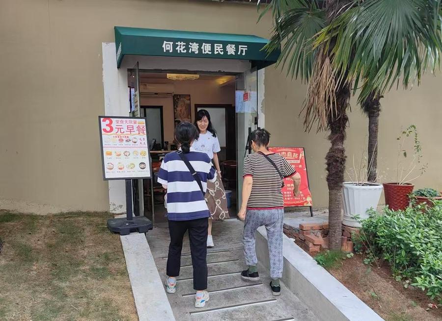 “現在這個白領餐廳就叫‘何花灣便民餐廳’,何代表何家宅、花代表花園坊,希望餐廳成爲社區、園區聯手共建的溫馨港灣。”廣業第二黨支部書記、何花灣便民餐廳所屬樂苗餐飲有限公司總經理周偉峯說,餐廳2012年開張以來主要服務園區上班族,因爲價格親民又是本幫菜,也吸引了不少周邊居民。在經營過程中,他發現有位老阿姨每次都帶一摞盒子來打包,說是因爲從旁邊小區走過來要20多分鐘,打包回去能喫好幾天。這給他帶來很大觸動,也有了設立便民餐廳的初心。在與居委會進一步溝通後,他了解到小區內55歲以上中老年人佔比約四成,大家也經常反映居民區與餐廳雖一牆之隔卻要繞行15分鐘。在園區的支持下,經整小區徵詢通過,在保障園區管理有序、安全的情況下開出了“便民門”,改造後的餐廳也於今年春節後正式對外開業。開業以來,餐廳還聽取並採納了不少居民意見,包括減少飯菜量降低價格、增加排氣扇、增加取菜窗口的玻璃隔擋等,65歲以上顧客還可享受9折優惠。“我始終記得一句話:餐廳調的不僅是口味,調的更是民心。”