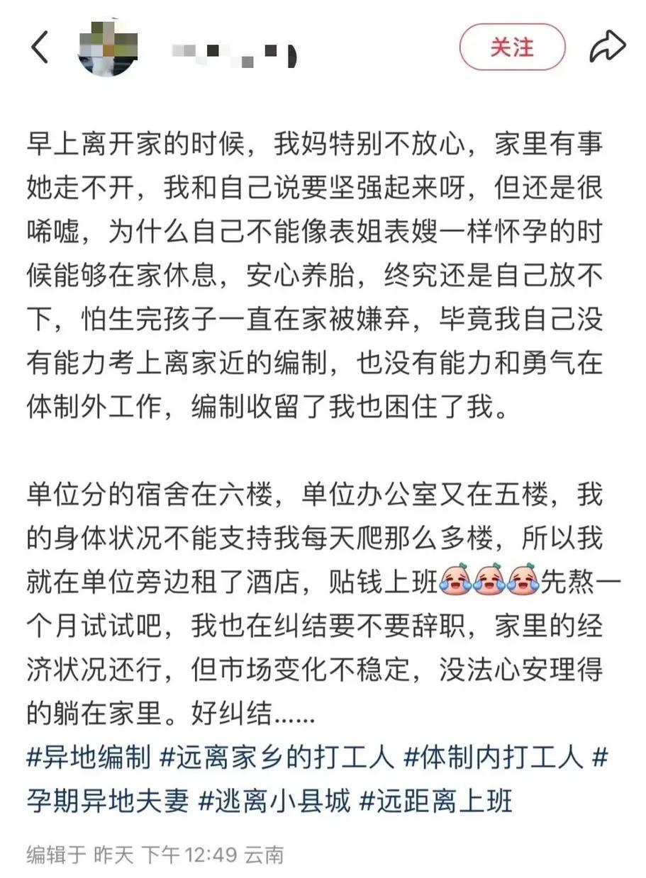 近日,雲南紅河一女子自曝懷孕期間擺爛不上班,丈夫是市副處,引發網友關注。該女子表示,自己在縣城的文旅局工作,老公在市裏是副處級領導。自己“上岸”後就懷孕,請假兩個月,把工作都分給合同制同事,“之後又在家裏擺爛了一段時間沒去上班”。