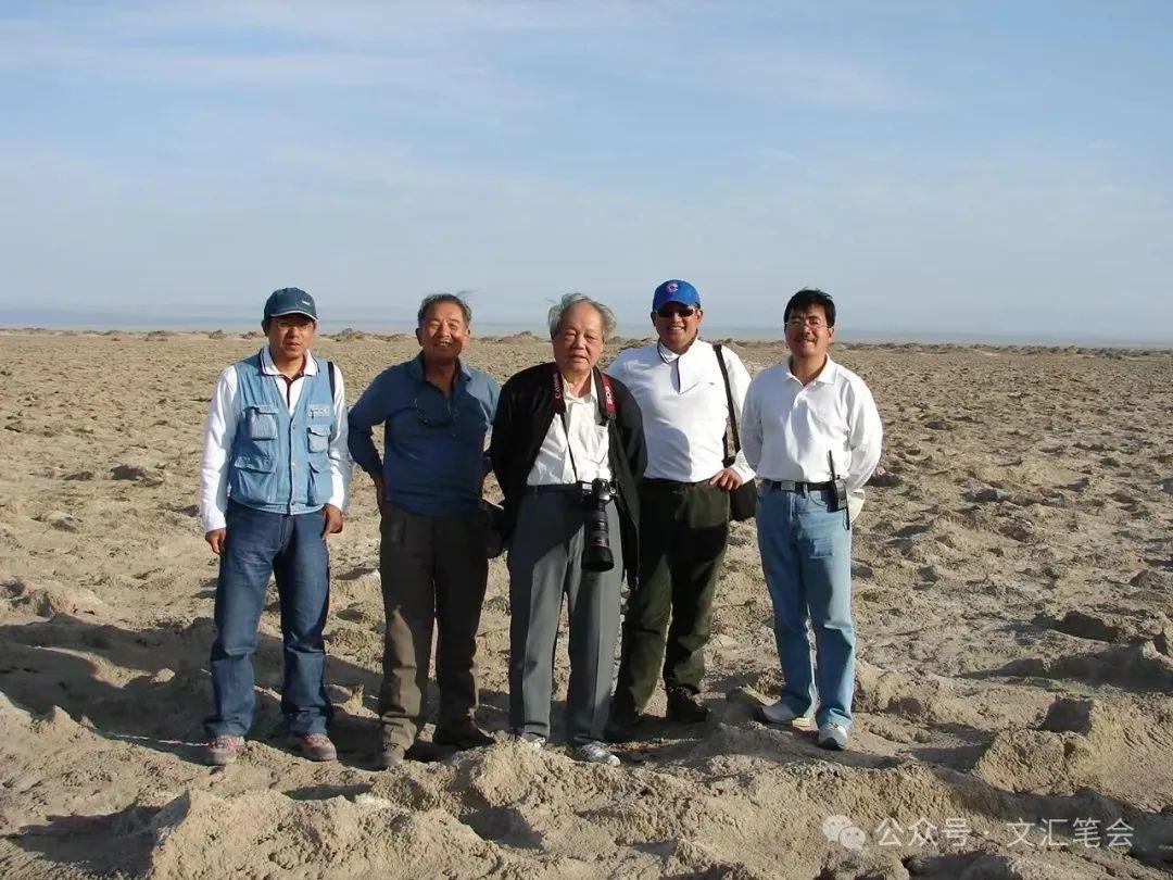 2005年9—10月考察羅布淖爾(左起:榮新江、王炳華、馮其庸、羅新、朱玉麒)