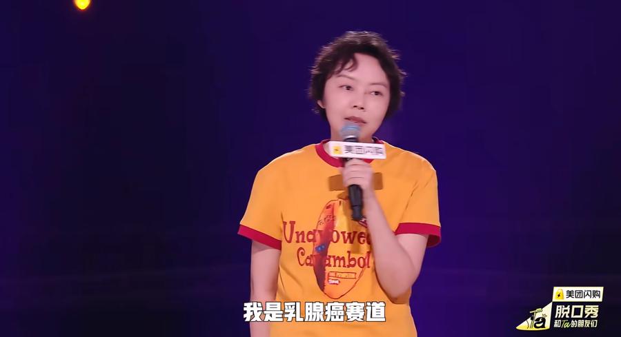 乳腺癌,是一種女性羣體常見的惡性腫瘤,王穎調侃自己在脫口秀中開闢了一條“乳腺癌”賽道。兩年前,她偶然發現乳腺癌,隨即做了切乳手術、內分泌治療。她笑談其中的痛苦:“內分泌治療是打絕經針和喫藥,所以我今年30歲更年期了。朋友安慰我說命運還是很公平的,給你關上了一扇門,打開了一扇窗:雖然你的乳房變成了一個,但是更年期變成了兩個。”