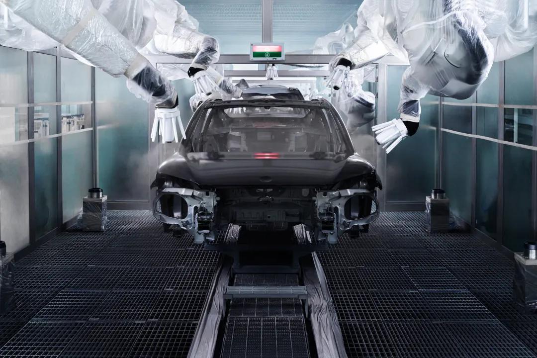 在衝壓車間,我們看到了自動換模系統,它能根據用戶訂單,柔性切換對應車型所需的模具,換模時長僅需要3分鐘,爲傳統人工換模的1/10,是業內最高水平;在車身車間,四門裝配工位上的機器人,通過3D視覺和算法識別車型,精準裝配,98秒內就能完成各種車門的安裝……