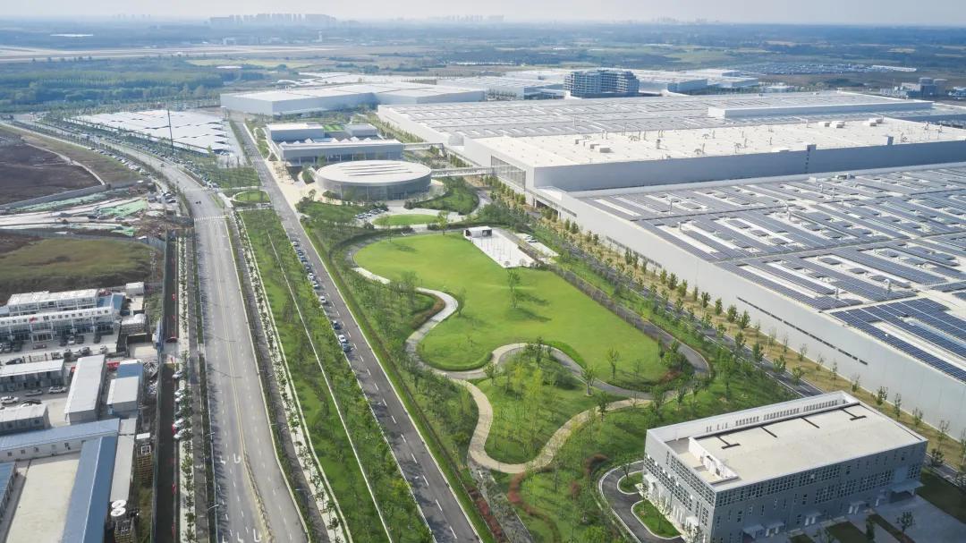 車間外,儘管烈日當頭,但天空蔚藍,白雲抽象得如卡通畫。藍色之下則是綠植成蔭。李斌指着一大片草坪告訴我們,蔚來是國內首個採用“海綿城市”理念的工廠。廠區的庭院設計和雨水回收裝置,像“海綿”一樣吸水,能有效利用水資源,並減輕廠區排水壓力。