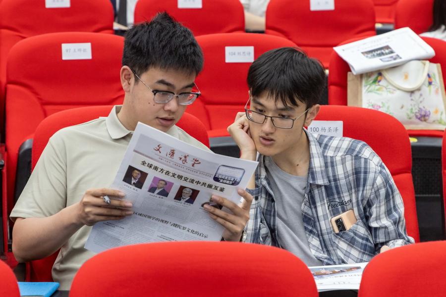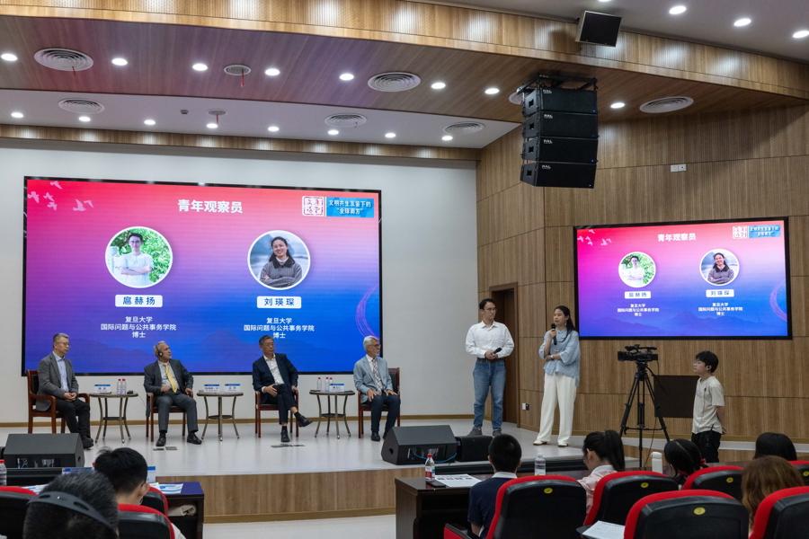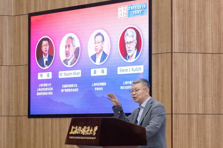 【導讀】文明互鑑落到實處的大金磚會如何求同存異,共同促進全球治理?今天(12日)下午,文匯講堂全球南方第五講《金磚+在全球南方的實踐與挑戰》將舉辦,金磚創始成員國的四位學者同臺共議,上觀App線上雙語直播。在此,借第四講的青年觀察員快評與全場的精彩瞬間回憶6月21日第四講“全球南方在文明交流中共振與互鑑”盛況。講座在聯合主辦方上海外國語大學成功舉辦,該校上海全球治理與區域國別研究院執行院長楊成主講,並在圓桌環節與上海市區域國別學會會長姜鋒、該校跨文化研究中心主任顧力行(Steve J. Kulich)和巴基斯坦國際文化遺產管理委員會成員納西姆·汗(Nasim Khan)開展討論。160餘位聽衆現場參與,上觀APP、央視頻、上外視頻號、文匯報視頻號等直播。