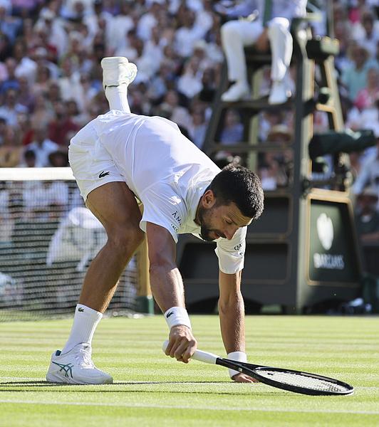 四分之一決賽戰勝科博利的倒數第三個球,德約科維奇在底線後方那片褐黃相間的草地與泥土上重重滑倒。倒下的瞬間,他的雙腿像被折斷的叉骨般分開。儘管他此後取消了週四的訓練,卻還是踏上了中央球場,面對世界第一,他寄望於物理治療與止痛藥物能再續奇蹟。