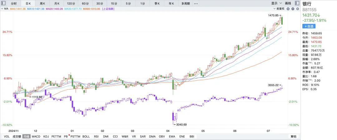 然而從2023年下半年以來,銀行股卻異軍突起。最近更是走出了波瀾壯闊,隨着獨立於大盤的行情,加冕爲中國股市的“銀偉達”。