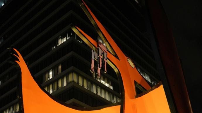 Dino Bird此次爲全球首次亮相。據現身展覽開幕式的朱利安透露,這件作品的靈感來自自己小時候的一幅畫,畫的是山洞裏人與恐龍的對戰。他坦言“喜歡將小尺寸作品放大,挑戰人們日常的視覺,看看觀衆的反應是什麼樣的。”