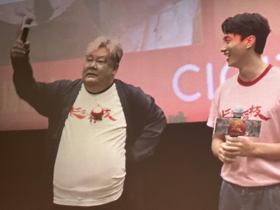 主創團隊與觀衆分享了電影的拍攝趣事和幕後故事。董成鵬作爲電影的導演和主演,受到了觀衆最多關注,他的一位年輕的“老影迷”提到,自己在十年前董成鵬的第一部電影《煎餅俠》上映後就成爲了他的粉絲。董成鵬深有感觸,他回顧了十年導演生涯的成長與變化,特別感謝了觀衆一直以來對電影的支持與厚愛:“十年來我們一直在努力,觀衆也見證了我們的成長。”
