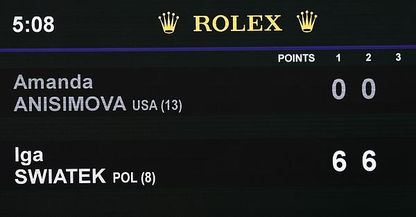 阿尼西莫娃曾令對手膽寒的反手頻頻掛網,發球環節更是徹底失控。首盤她僅得9分,一發成功率僅爲33%,還有3次發球雙誤,送出14次非受迫性失誤。雖然阿尼西莫娃的狀態在第二盤略有提升,但依然難以阻止斯瓦泰克登頂。上一次在大滿貫女單決賽出現如此懸殊的比分,還要追溯到1988年的法網,格拉芙以兩個6比0橫掃茲韋列娃。