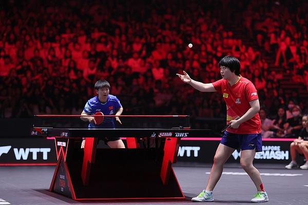 打法和性格迥異,蒯曼和陳熠的成長軌跡卻幾乎同步——14歲時雙雙入選國家二隊,2020年又同時晉升國家一隊。她倆早在2019年就搭檔過女雙,2022年至今攜手參加了多站WTT賽事。蒯曼曾在一次女雙賽後採訪時笑言:“我倆比我跟林詩棟搭檔還久。”而陳熠對蒯曼的評價只有一個詞——“完美”。