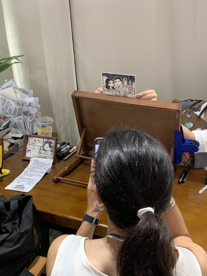 門店社交媒體賬號上發佈的“人生四格反應瞬間”視頻,是PIGGYOO走紅的重要原因之一。畫師會像拍立得那樣,將成品畫作從畫板背後緩緩推出,顧客的笑容、淚水、驚歎一一被鏡頭記錄下來。“我們希望通過這種帶有儀式感的過程,爲顧客製造驚喜,爲他們提供真正的情緒價值。”依麗達娜說。