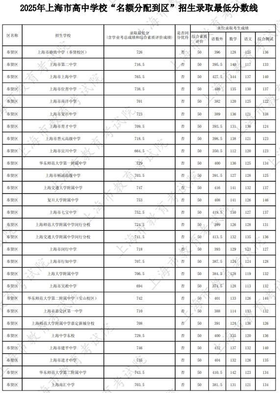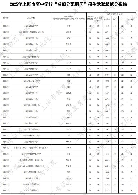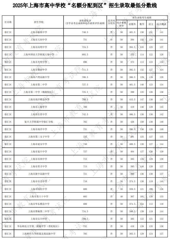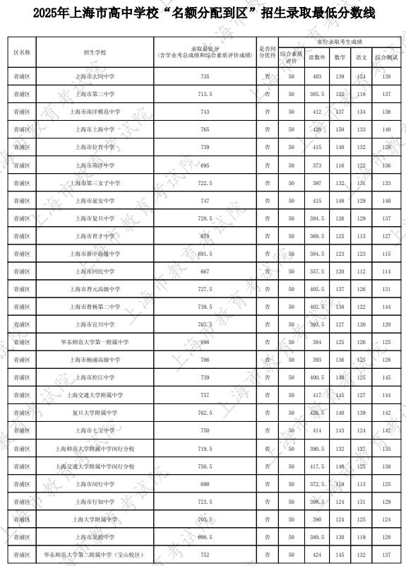 2025年上海中考名額分配到區、到校分數線公佈,你的夢校分數達到了嗎?