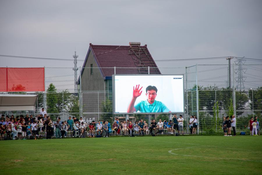 金山區海棠小學與漕涇小學的足球小將們率先獻上一場友誼賽,以球會友,展現新生代的力量。決賽哨響前,還上演了溫情一幕。通過現場大屏幕,漕涇鎮與千里之外的貴州榕江縣成功實現“雲端相聚”。榕江代表深情感謝漕涇鎮長久以來的關心支持,並向所有“漕涇親人”發出熱情邀約:“歡迎來榕江做客,共赴全國總決賽盛宴!”這份跨越山海的深厚情誼,爲即將到來的巔峯對決注入了更多期待。