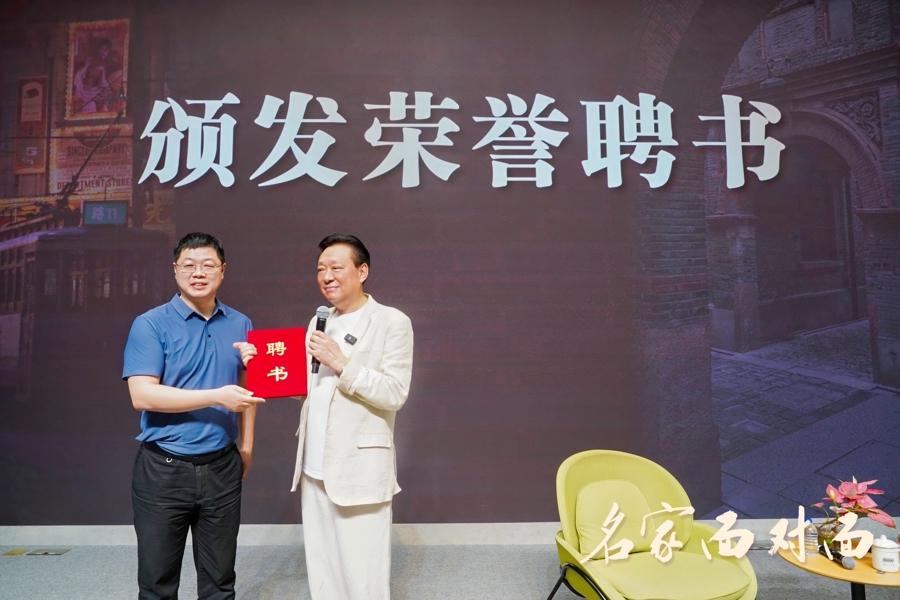 現場,徐彙區委宣傳部副部長王俊爲毛老師頒發“美育導師證書”,同時毛老師也進行了禮物回贈。在與主持人夏磊的精彩對談中,藝術大師毛猛達以數十載舞臺沉澱,爲觀衆鋪展開一幅絢麗的藝術畫卷。從《外國人學唱中國歌》到《球迷》,從《天涯同命鳥》到風靡滬上的《石庫門的笑聲》,他用細膩傳神的表演,將市井生活中的酸甜苦辣演繹得淋漓盡致,讓觀衆在會心一笑間品味人生百態。毛老師特別指出,滬語那精準又形象的表達方式,如“拎不清”這樣的詞語,既準確刻畫人物性格,又飽含溫柔的調侃,用在獨腳戲中更顯層次分明。他感慨道:“真正的滑稽藝術不在於嘲弄他人,而在於笑中有淚,諷中有愛,而滬語正是傳遞這份深邃情感的絕佳媒介。”