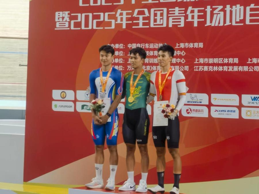 7月14日傍晚,2025年全國場地自行車錦標賽暨青年場地自行車錦標賽男子全能賽最後一項——25公里記分賽進入最後一圈,來自上海的年輕騎手吳俊傑還處於領先位置,但在衝線後,他以極爲微弱的劣勢以169分比170分不敵廣東選手馬彬焱,無緣站上最高領獎臺。以這種方式與金牌擦肩而過,讓上海自行車館內的主場觀衆們扼腕嘆息,在面對記者時,吳俊傑本人卻直言“挺正常的”。