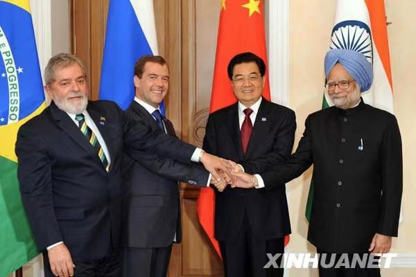 2009年,金磚國家首次峯會在葉卡捷琳堡召開,中、俄、印、巴四國領導人蔘加