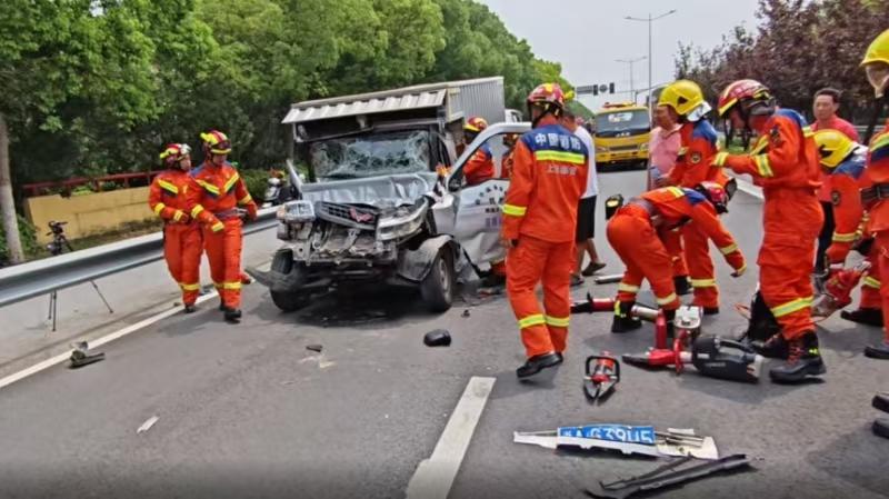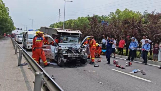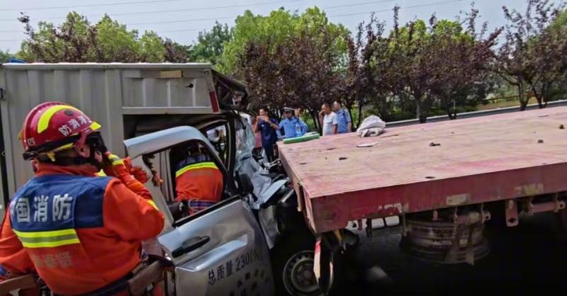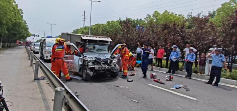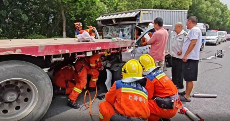貨車追尾,人員被困,消防員破拆化解險情