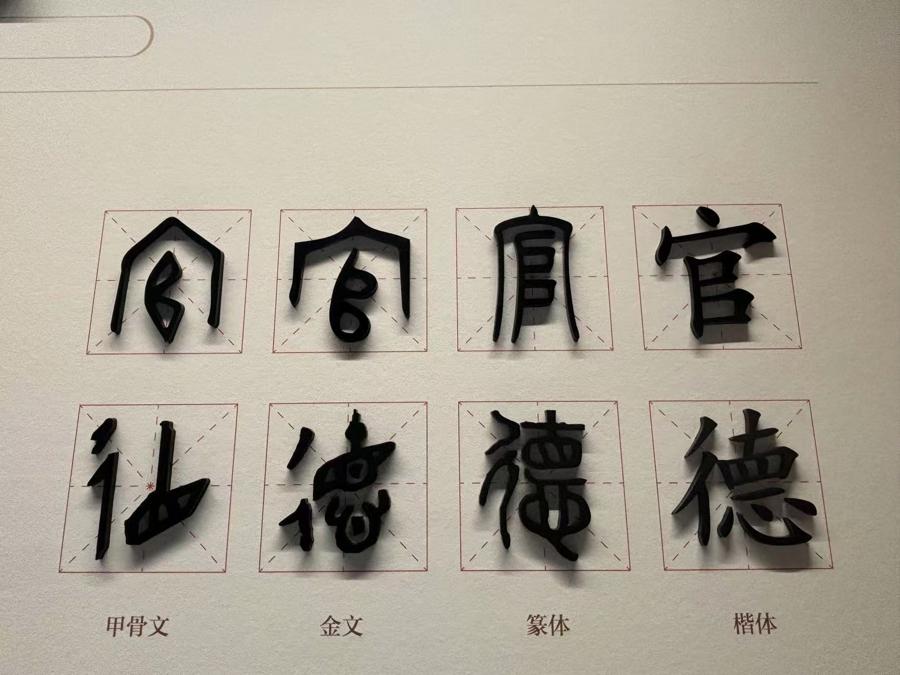 展覽展示的“官”“德”二字從甲骨文到楷體的演變。