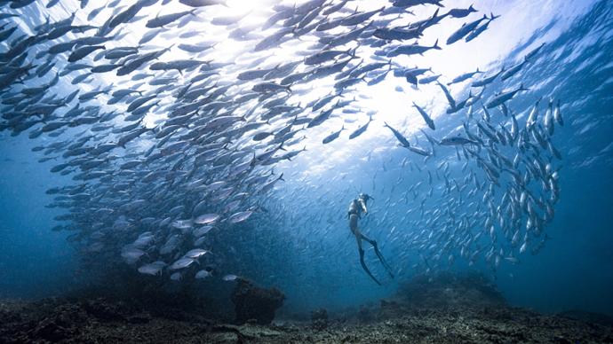我跪在海底,魚兒在我身邊環繞,海豚在我頭頂遊走,我開始懷疑自己在演化中的地位。這是我第一次在開闊的海域中暢遊,我不由得去想,我在水中該是有多麼的突兀。我需要背上裝着空氣的鋼罐纔可以順暢呼吸,需要戴上面罩纔可以環視周圍,需要穿好潛水服纔可以保持熱量均衡,需要負重下沉到海底,需要靠充氣背心浮上水面,還需要使用腳蹼在水中游動。而我旁邊的黃尾鯛有在海洋中生活的完美條件:它張開嘴巴吞下海水,便有一股海水從嘴裏流進鰓絲,鰓絲裏毛細血管吸收氧氣,放出二氧化碳和氨。然後它合上嘴巴,打開鰓蓋,海水就流了出來。它的身體和水的浮力相當,所以重力對它而言幾無影響。要游泳的時候,它只需輕搖那流線型的身體,便一路劈波斬浪。如果我伸手去抓黃尾鯛,它不但能看到我的手,還能通過對壓力敏感的側線感覺到前方水流的變化,於是身子一晃,就跑去了安全的地方。