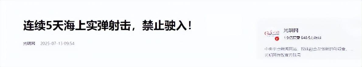 參考信源:《光明網——2025.07.13——連續5天海上實彈射擊,禁止駛入!》