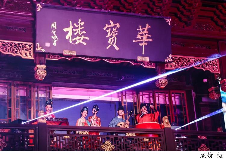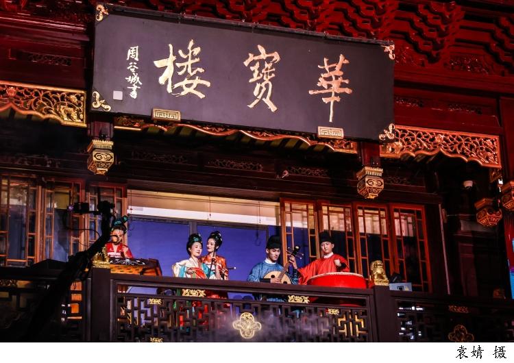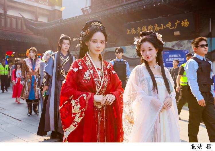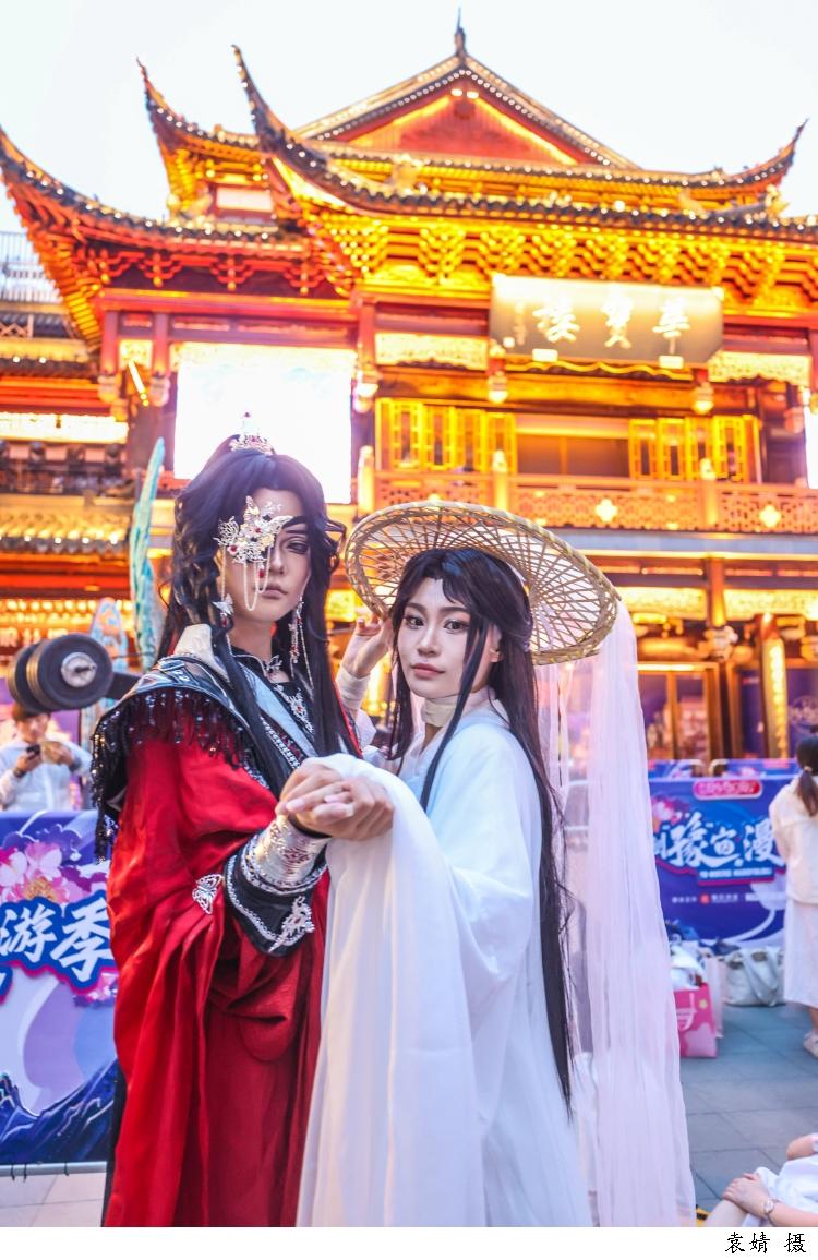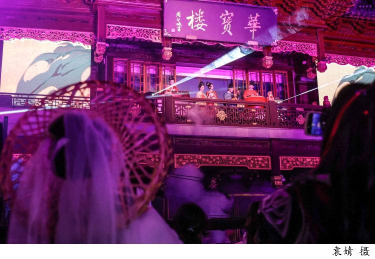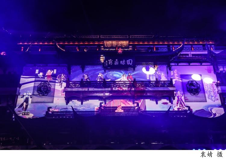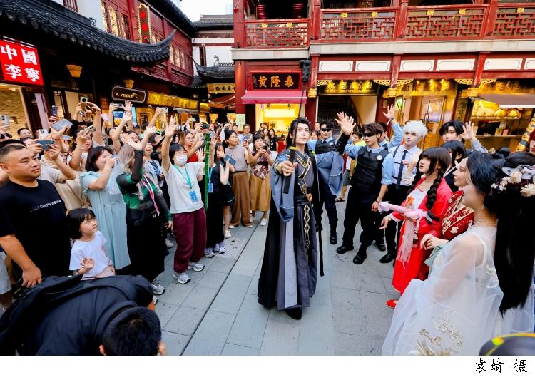 當晚,記者踏入豫園商城2號門,現場宛如啓動了次元穿梭的開關。被譽爲“中式浪漫天花板”的凝暉路,被精心還原爲動畫《天官賜福》中的極樂坊。豫園老街與《時光代理人》以“時光穿梭”爲紐帶,將動畫敘事與現實空間緊密縫合。九曲橋畔,《百妖譜》的百夭桃樹、《牧神記》的大墟祕境、《霧山五行》的潑墨山水與《天官賜福》的明燈三千在激光霧森中流轉成靈動畫卷,締造出令人屏息的東方幻想世界。