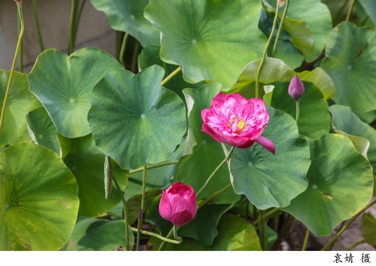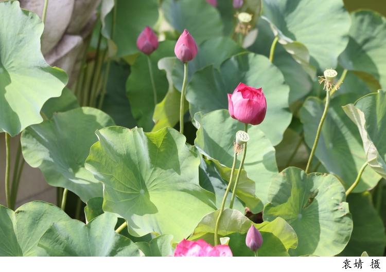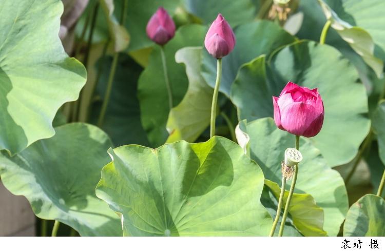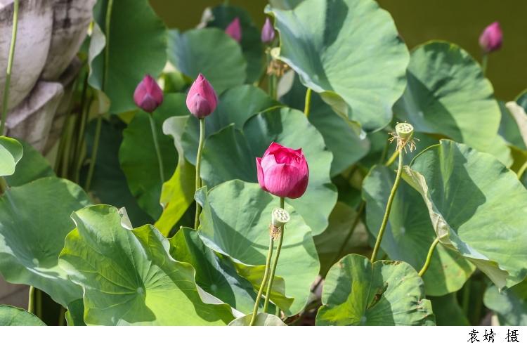 盛夏時節,豫園九曲橋邊的荷花次第盛開,有的含苞待放,有的綻放吐香。